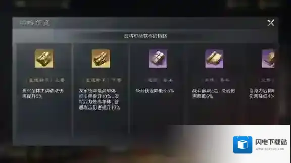 2.看阵容搭配有些武将的韬略能够赋予友军不同的增益效果,可以根据武将的阵容搭配来选择合适的韬略。例如曹操拥有两本专属韬略:《孟德新书》上卷、《孟德新书》下卷。