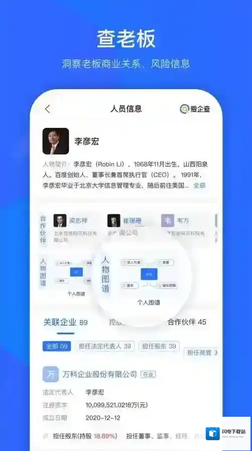 4、老板信息:个人图片、商业角色、所有企业、合作伙伴等