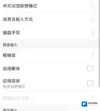 5、在输入设置页面中,找到启用繁体功能,取消勾选即可。