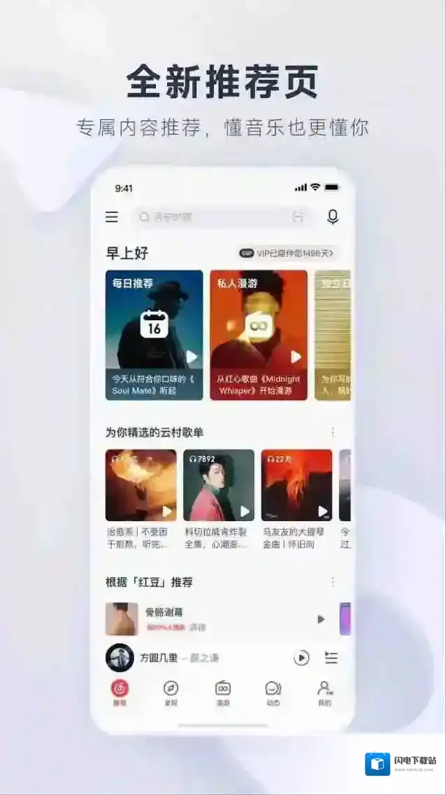 网易云提供了社交功能,关注自己喜欢的歌手,随时了解他们的动态,分享自己的听歌历史以及喜好,和其他的用户进行分享交流。