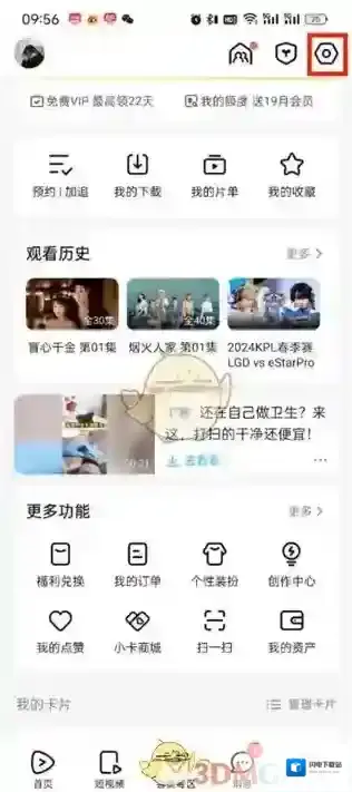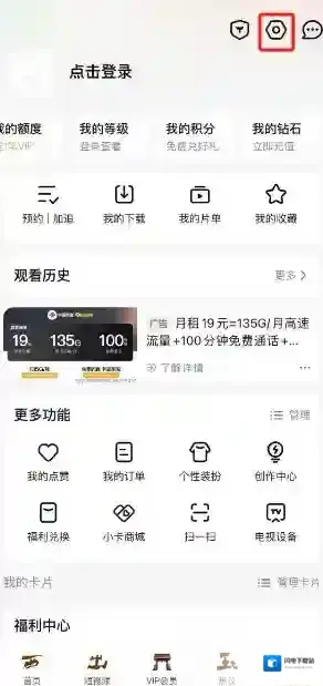 2、然后在个人中心的页面中我们可以看到账号的会员到期时间,在这里点击右上角的设置图标;