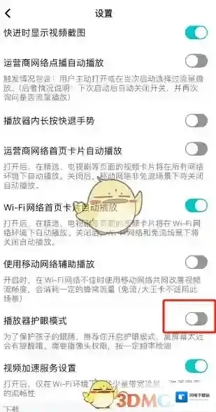 3、最后下滑设置页面,找到并关闭播放器护眼模式后面的开关即可!