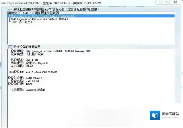 chipgenius芯片精灵v4.20.1107 免费中文版是一款USB设备主控芯片测验东西,能够全自动检查U盘、MP3/MP4、读写器、移动盘等全部USB设备的主板芯片型号标准、生产商、知名品牌、并给予相关材料下载链接。还能够查USB设备的VID/PID信息、设备姓名、插口速率、系列号、设备版本等。是数码顾客、电子爱好者、DIY人士和数码维修人员身旁的好助手chipgenius芯片精灵最新版下载有需要的用户快来梦马内容库吧。