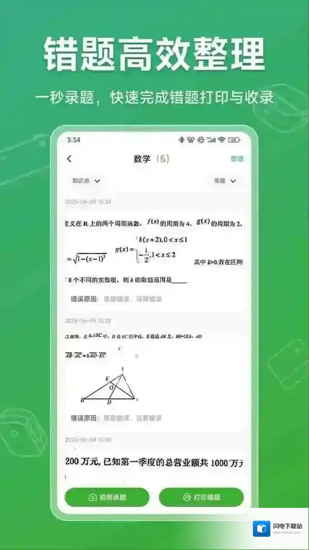 1、错题拍照整理,自动生成错题本,支持试卷去笔迹还原,反复练习巩固知识。