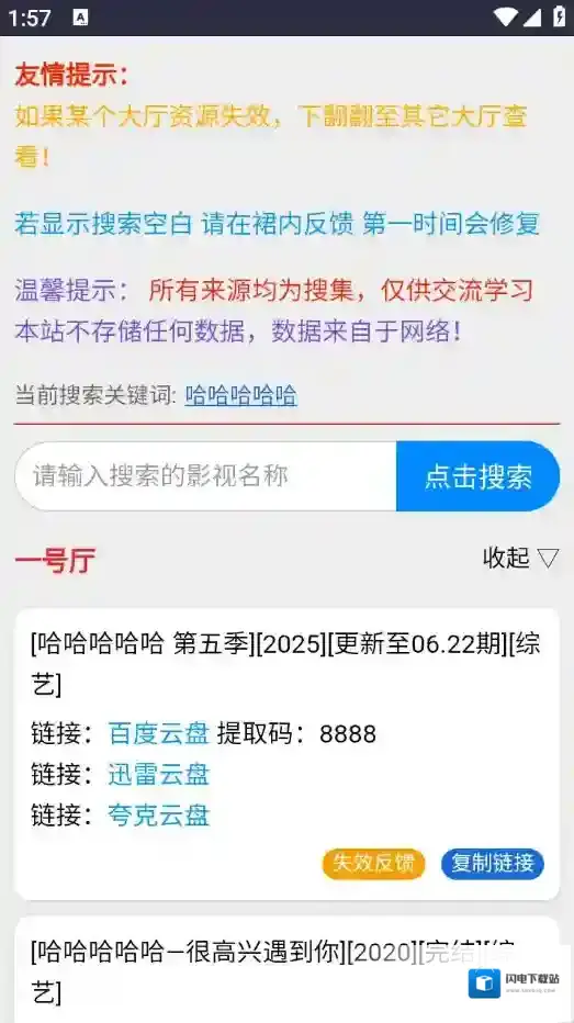 3、用户直接在网站上搜索关键词,即可快速显示各个网盘的影视资源下载链接和提取码,操作方便快捷。</p