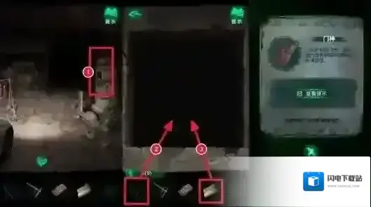 找到门神并进入门神房间后,先拾取靠在床铺上的晾衣杆,然后往左侧看,有一个灶台和一个风箱,这里需要先点灶台,在道具栏选择火柴点燃灶台,然后返回再点击灶台旁边的风箱,按照之前在小卖部窗口用手机看到的提示拉动风箱,看地上有白色粉笔画的标记,分别代表一、二、三,长按风箱把手,拖动到对应的标记位置后松手,视为拉动了一下,依次将风箱把手拉到一、三、二、一的位置,让火生的更旺。