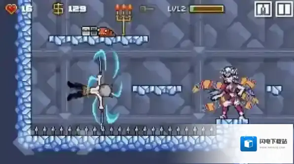 1、闯关战斗操作:操控角色在关卡中与怪物展开格斗,通过按键进行攻击、跳跃与防御,躲避陷阱并击败了所有敌人,完成关卡的挑战。
