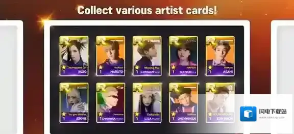 2、卡牌基础分:收集同一组歌手同一主题(THEME)的卡牌越多,等级越高,基础分就越高,而不同组的歌手因人数不同,收集的难度也不同,人数越多的组合收集完成的基础分会高很多,而solo歌手的基础分都是500000分。