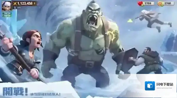 1、点击開戰,进入冰雪战场,操控角色(拿武器),配合队友(绿巨人、弓箭手)攻击敌人。