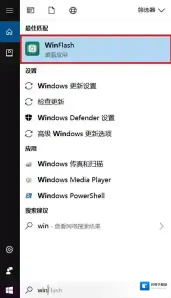 1、解压后打开。然后,在桌面左下角搜索框输入WinFlash,鼠标点选。