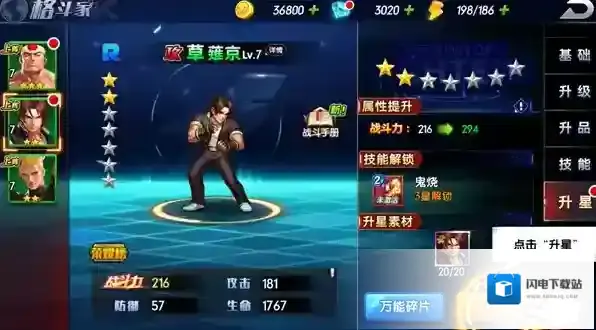 消耗相应的角色碎片可进行升星获得战斗力。