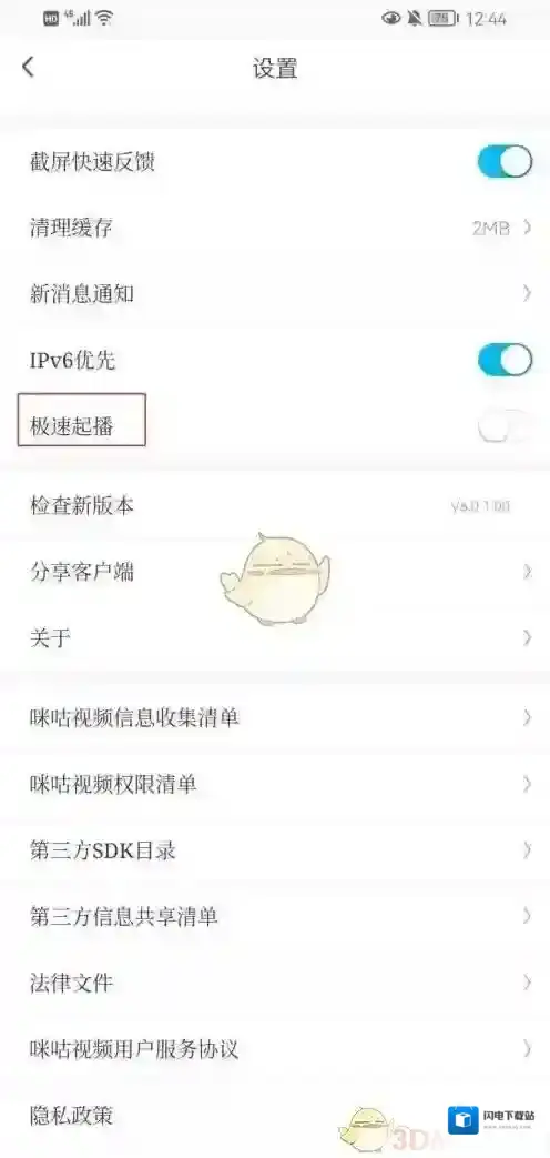 2、最后关闭极速起播后侧的开关即可完成操作。