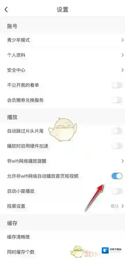 3、关闭允许非WiFi网络自动播放首页短视频右侧开关即可。