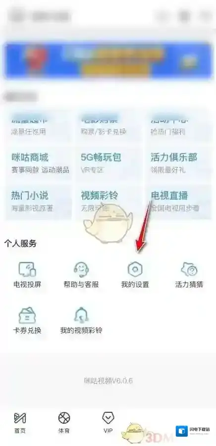 1、打开咪咕视频,选择我的点击右下角的我的设置