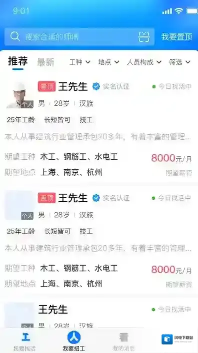 高效匹配工种丰富,信息真实;智能匹配,高效完成招工找活!