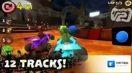 3、比赛中,留意排名(4TH起)、圈数(3圈),超对手(如橙色车),争冠军,解锁新赛道、角色与赛事。