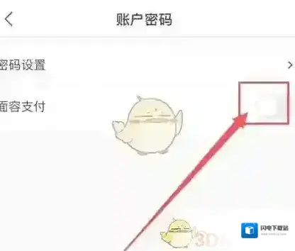 3、接着,进入账户密码设置界面,选择“面容支付”,点击右侧按钮即可开启面容支付。如图: