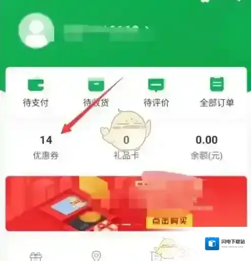 2、在个人中心中点击如图所示的优惠券,这里如果是新人的话会自动获取优惠券。同时也可以邀请新人获取优惠券。