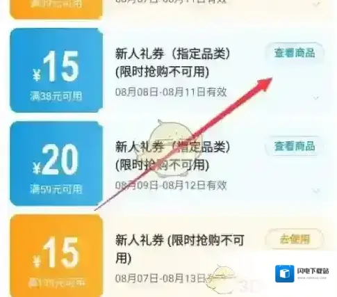 3、如图所示,点击一个优惠券,然后直接去使用该优惠券。