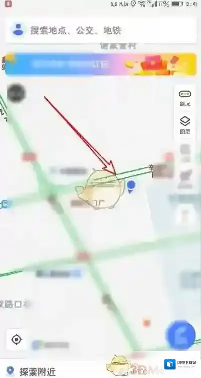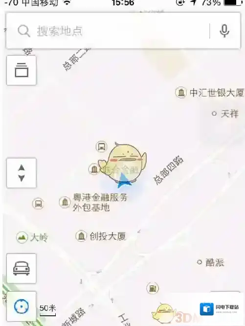 3、定位成功,“箭头”变为蓝色,图中心出现你的当前坐标。