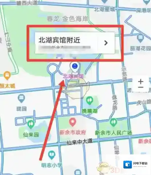 3、进入到街景页面后,在找到需要查看的街景地址,这里以北湖宾馆为例,点击地图上的地址提示,即可跳转到街景页面;
