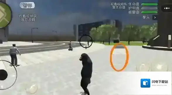 1、操控猿猴,沿箭头指向的目标(如骑平衡车的人)移动,利用左侧摇杆调整方向,靠近触发互动或任务。