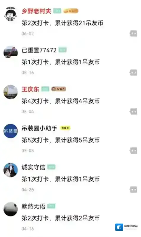每日打卡获得吊友币,累计打卡获得更多吊友奖励。