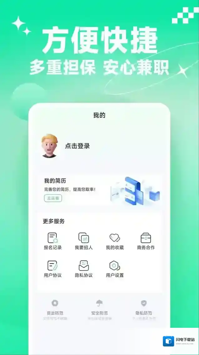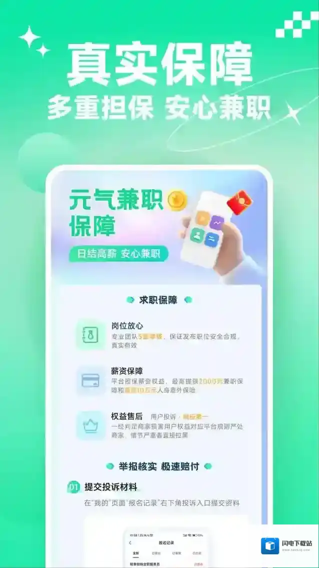 3、提供完善的保障服务,可以保证用户做兼职时的收入和利益,让用户放心做兼职。