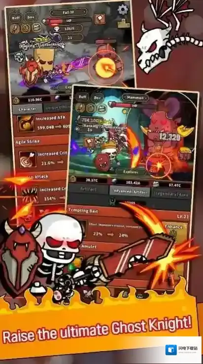 幽灵骑士是一款融合了动作与养成元素的休闲游戏,玩家将化身手持生命之剑与神盾的幽灵骑士,在被贪欲恶魔玛门摧毁的村庄中开启复仇之旅,挂机放置为核心玩法,无需长时间在线,离线也能收获丰富收益,同时融入精彩剧情与角色养成系统,通过爬塔、挑战魔像副本等多样玩法提升能力,解锁技能与战斗形态,感受从复仇到成长的热血历程。
