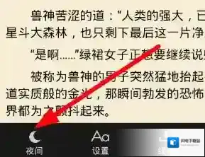 2、接着轻点小说界面,就会出现设置,可以切换成夜间模式。