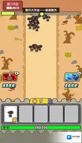 2、上方会随着时间不断的出怪,士兵们靠近后就会展开战斗。
