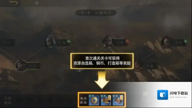 在远征中,首次通关关卡可获得资源自选箱、铜币、打造箱等奖励,重复扫荡关卡则获得基础资源奖励。