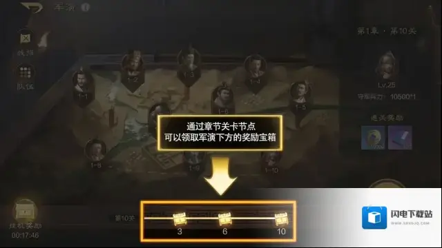 通过章节关卡节点(3、6、10),可以领取军演下方的奖励宝箱,宝箱能够获得铜币、并且某些宝箱还附带相马令和天赋经验等物品。这是前期快速获取铜币的途径,也是获得相马令的好地方。