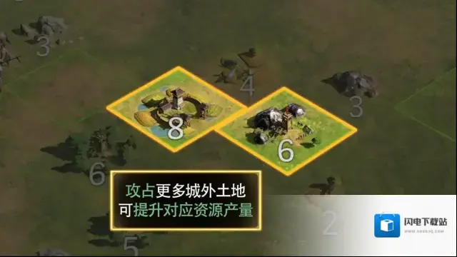 1、攻占土地:击败守军并占领土地后,即可获得对应资源产量。