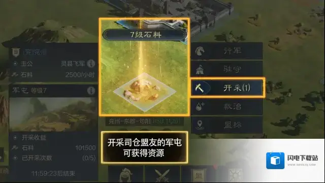 2、军屯:司仓使用天赋所建立的军屯,可以采收获取资源,盟内有司仓建立军屯后可以及时去开采。