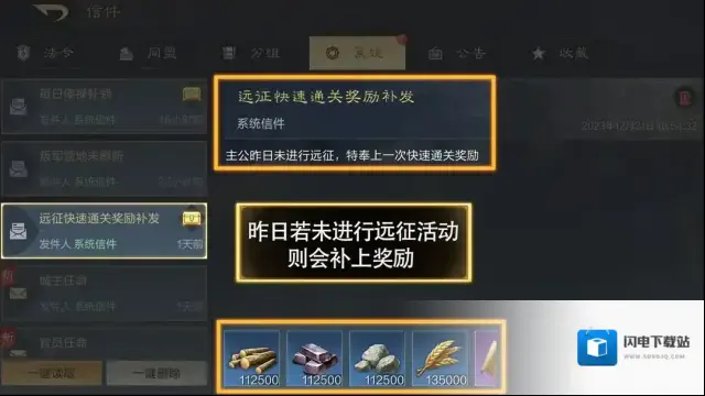 如昨日未进行远征活动,则会补上奖励。