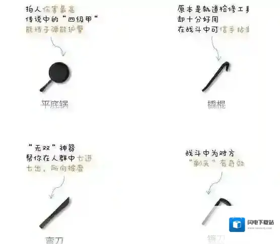 近战武器其实就是一个手持武器,也就是说像是平底锅、镰刀之类的武器,在近战武器中,其实平底锅的伤害是最高的,所以几乎每一个人的身上都会背着一个平底锅。