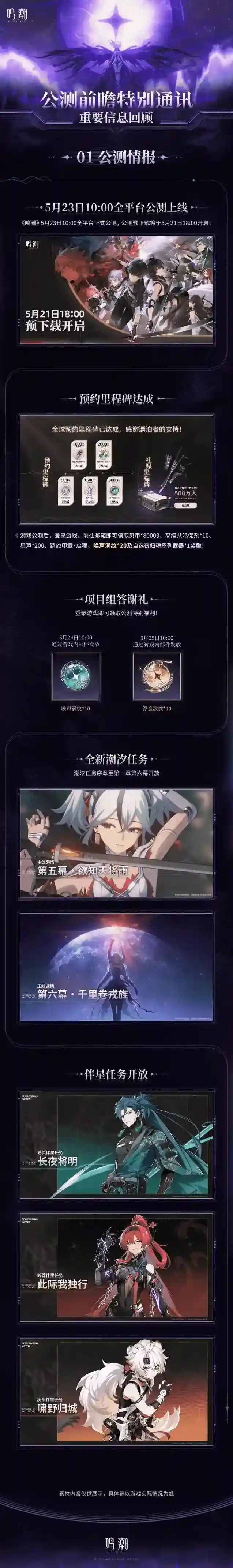 鸣潮公测前瞻特别通讯 | 重要信息回顾