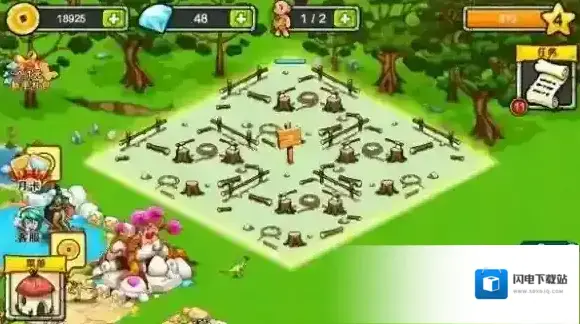 在原始森林中,玩家只需点击想要扩建的地方,并使用少数饲养员即可完成庄园扩建。