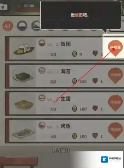4、有顾客来店里的时候,玩家就需要准备食物,点击料理,开始烹饪制作。
