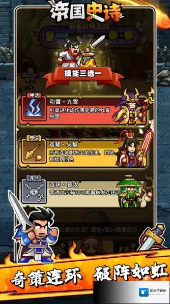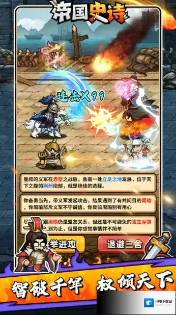 帝国史诗,以三国背景为题材的文字冒险类肉鸽RPG手游。我们将会来到热血的三国时代,在这里开启你的霸业之旅!无需什么复杂的操作,轻松点击推剧情,过五关斩六将,享受畅快杀敌的爽快玩法!在闯关过程中可以自由的去搭配自己的技能组合,每一局的选择都可能不相同,策略性十足,更多丰富多样的玩法模式任你选择,让你畅享酣畅淋漓的战斗盛宴!