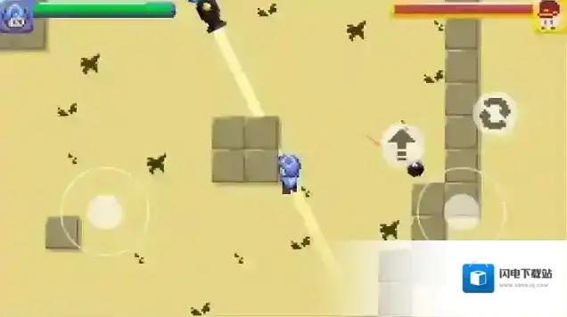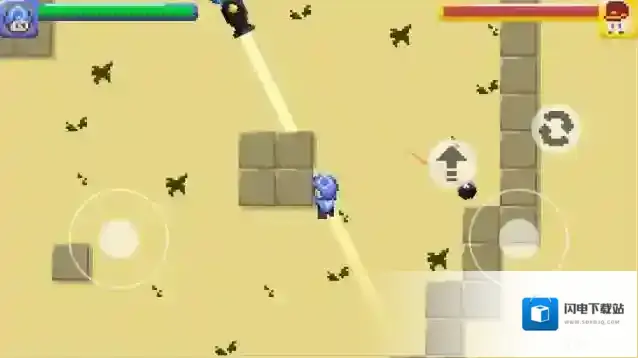 3、正式开始后左边控制角色的移动,右边是攻击,闪避和切换武器按钮。