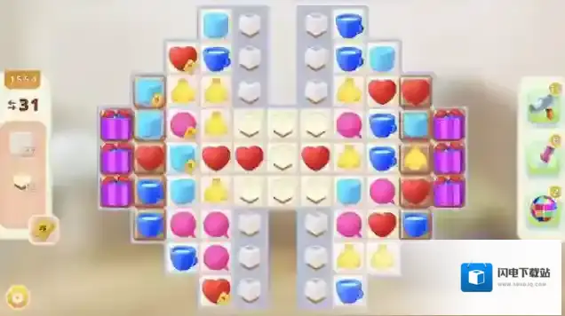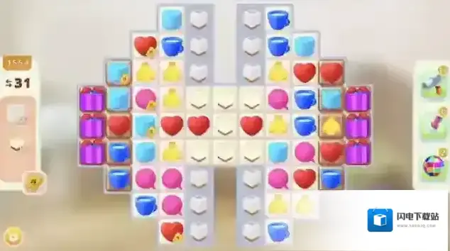 3、玩法非常简单,通过移动让三个相同图案连在一起即可消除。左侧也会显示关卡目标和剩余步数。