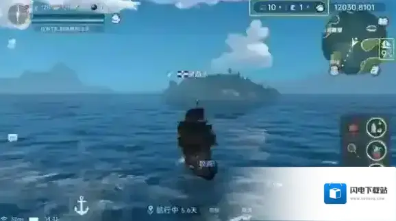 出海后点击左下角船舵中的船锚按钮即可启动船只,再次点击则可使船只停下,通过长按舵盘左右两侧,可以控制船只的行驶方向。