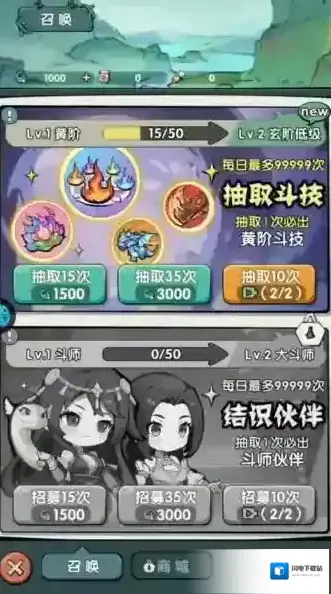 3、玩家还能通过召唤斗技来增强自身实力,在成功抽取斗技后要及时装备上,斗技还可以进行升级,以提升其威力。