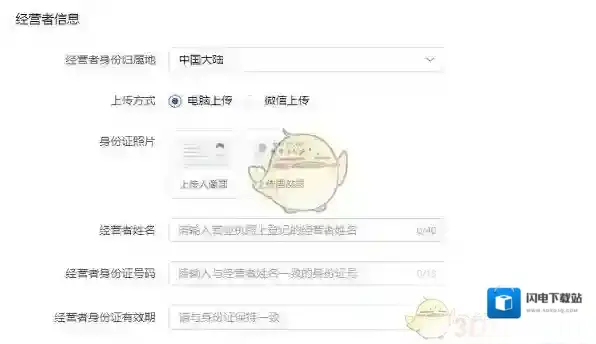3、选择完成后,上传营业执照并填写营业执照信息。