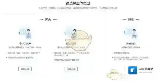 2、登录完成后,需要先选择我们的店铺主体类型。