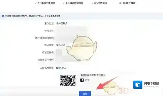9、最后使用手机抖音扫描二维码,扫描完成点击“提交”就可以开通抖音小店了。