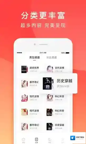 4、特色频道划分,打造男生、女生专属的阅读空间;