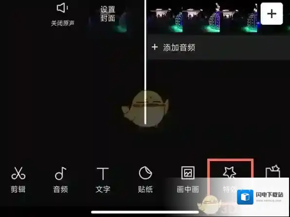 1、点击开始创作,导入素材,关闭原声,添加音频。